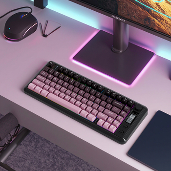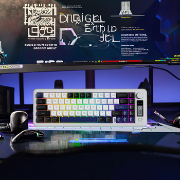 67 tuşlu RGB arkadan aydınlatmalı kablosuz oyun klavyesi üç modlu programlanabilir akıllı ekran Metal düğme PBT yuvarlak şapka şarj edilebilir membran
