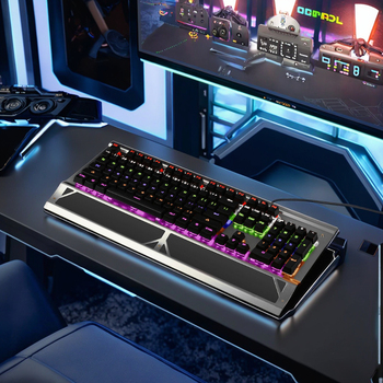 Multimedya mavi/kırmızı anahtarı RGB arkadan aydınlatmalı oyun klavyesi ile ergonomik oyun mekanik klavye PC için sıcak değiştirilebilir